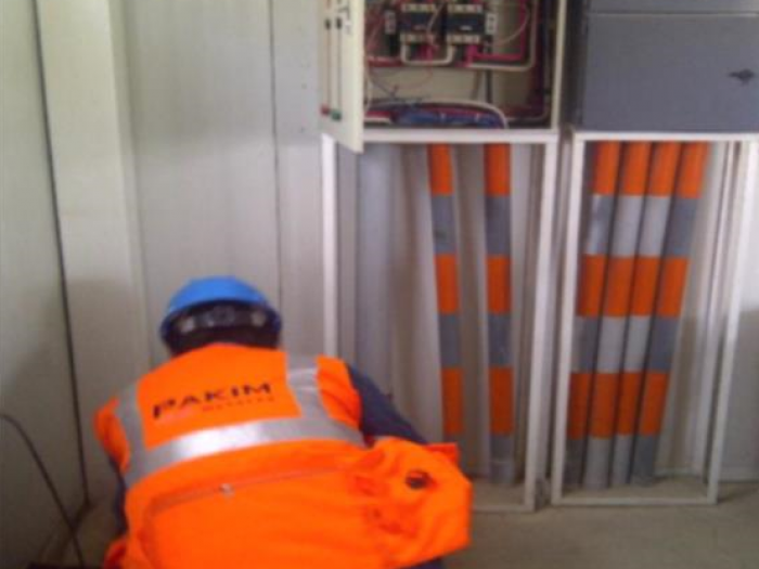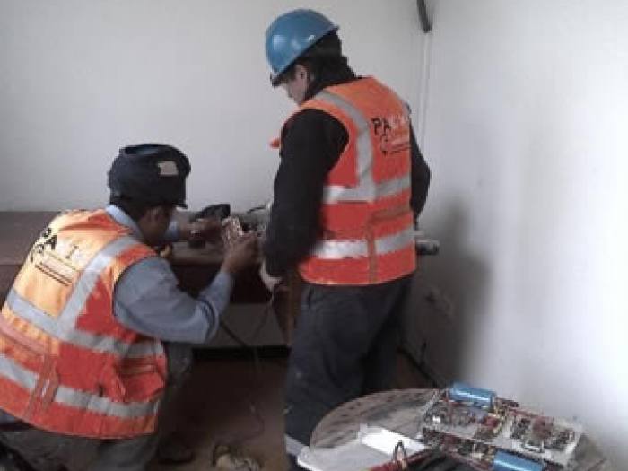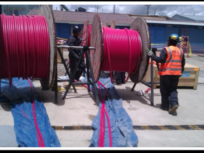 El tendido de línea de fuerza de sala eléctrica hacia los motores de los diferentes equipos en campo.